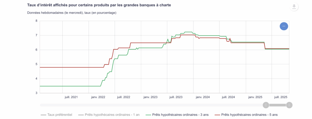 Les taux fixes à moyen ou long terme (4 à 5 ans) sont actuellement à leur plus bas niveau depuis juin 2022.