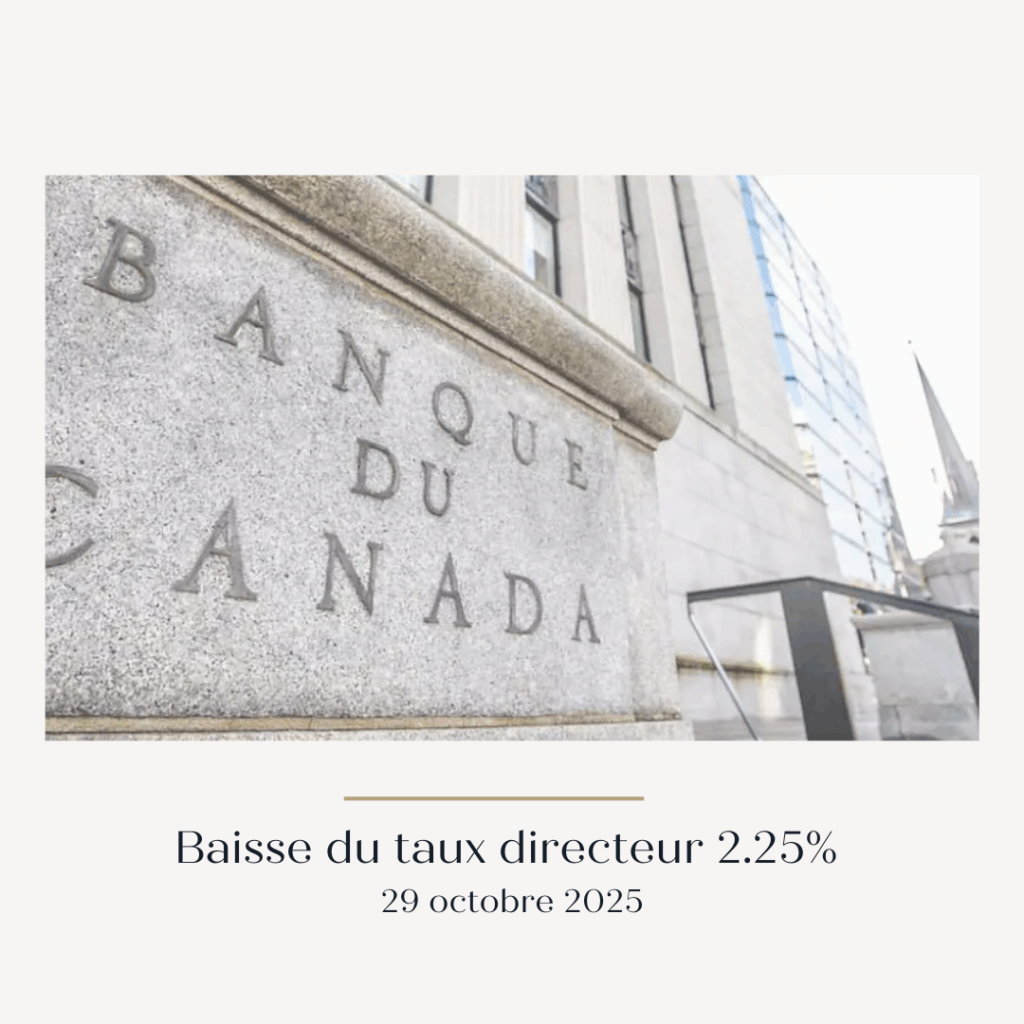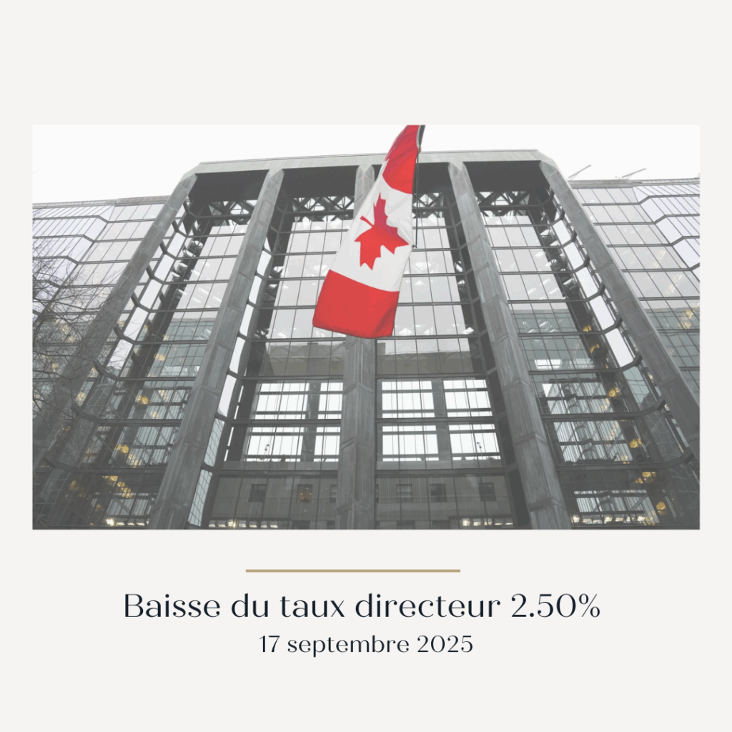 La Banque du Canada a annoncé qu’elle abaissait son taux directeur de 0,25 %, le faisant passer à 2,5 %. Cette décision a pour but de stimuler l’économie, en rendant moins coûteux les emprunts pour les ménages et les entreprises
